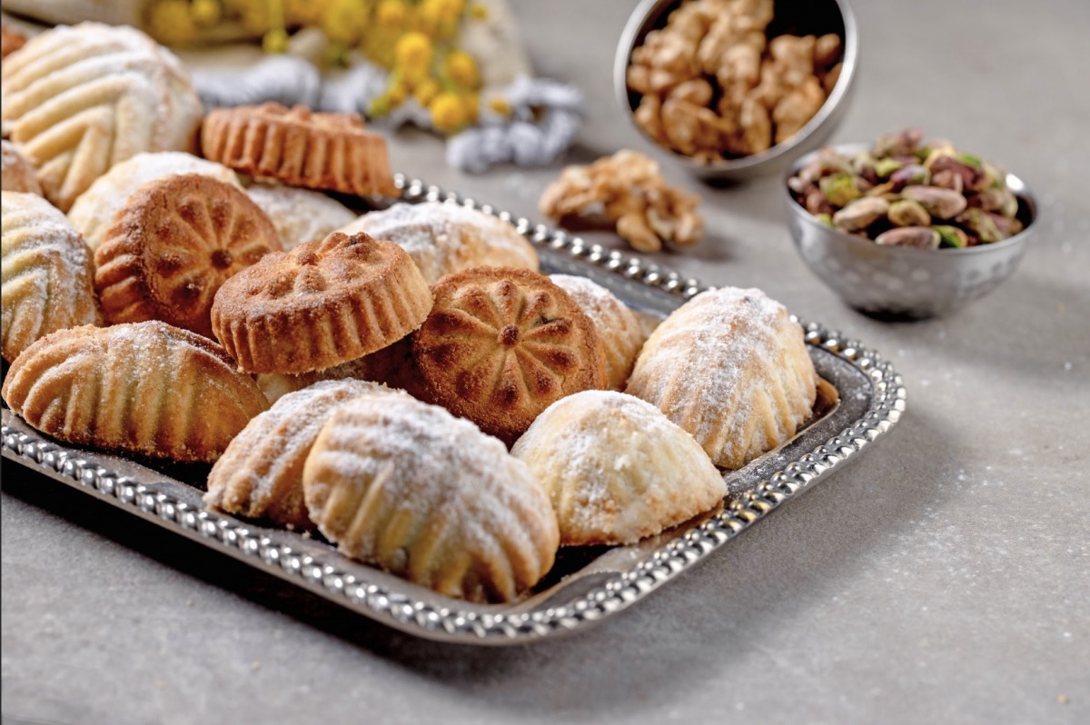 Maamoul are small, beautifully shaped cookies filled with dates, pistachios, or walnuts. The dough is soft and buttery, often made with semolina for a slightly crumbly texture. The cookies are pressed into carved wooden molds that create intricate patterns on the outside, making them look elegant even before baking. Maamoul is usually served during holidays such as Eid or Easter, but many bakeries prepare them year-round. Each bite feels comforting, with the sweetness of the filling balanced by the gentle flavor of the lightly scented dough.
