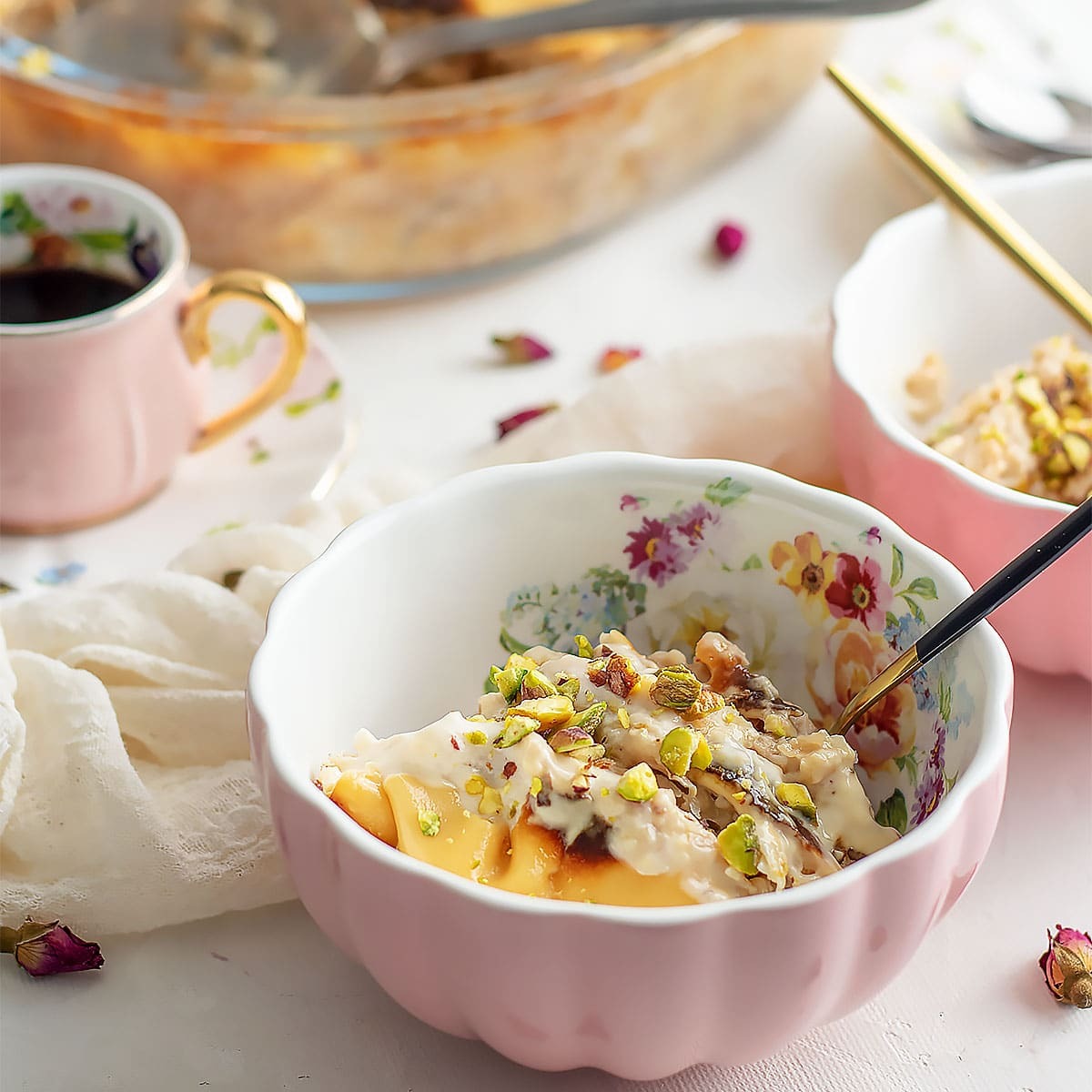 Umm Ali is a warm, comforting dessert similar to bread pudding. It’s made from layers of pastry or bread cooked with milk, sugar, and cream, then baked until soft and golden. The top is usually sprinkled with nuts like pistachios, almonds, or raisins. The dessert originated in Egypt and carries a rich, sweet flavor with a soft, creamy texture. It’s especially popular in winter or during celebrations, served straight from the oven. Umm Ali feels like a hug in dessert form — warm, cozy, and deeply satisfying.