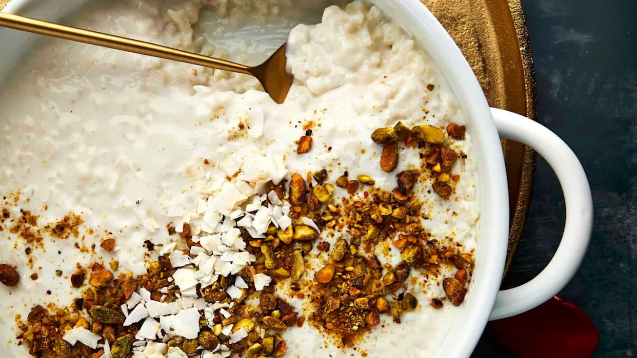 Rice pudding is a classic dessert enjoyed in many parts of the Middle East. It’s creamy, smoothly cooked with milk and sugar, and often flavored with rose water, orange blossom, or vanilla. Once chilled or served warm, it’s topped with pistachios, almonds, or cinnamon for extra flavor. The Egyptian version, Roz Bel Laban, is thick and comforting, while Muhallabia, popular in Lebanon and Syria, is usually lighter and more fragrant. It’s a simple dessert, but when prepared with care, it becomes incredibly satisfying.